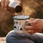 Emailletasse mit bayerischen Camping-Icons