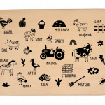 Brotzeitbrett mit bayerischen Bauernhoftieren